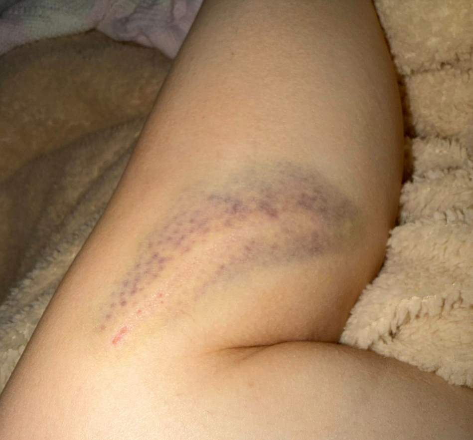 So we have been putting some cream on Lauren bruise after she trapped in in the car door.. looks worse than it is… she’s still walking and moving which is good! Thanks for all your tips…