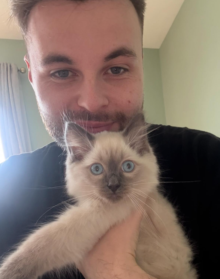 He can hear all the rains and wind from storm Claudia and wants to be cuddled constantly bless him…
